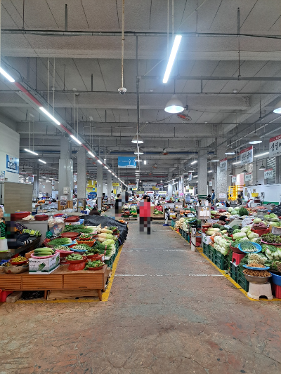 위 사진 속의 장소는 주차타워 제일 아래층에 위치해 있습니다. 각종 야채뿐만 아니라 국숫집 등 다양한