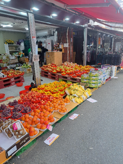 의류, 잡화, 식료품, 건어물 등 다양한 물품을 한 곳에서 구매할 수 있습니다. 시장 내부는 넓고 통로가 잘 정리되어 있어 편리하게 이동할 수 있습니다.