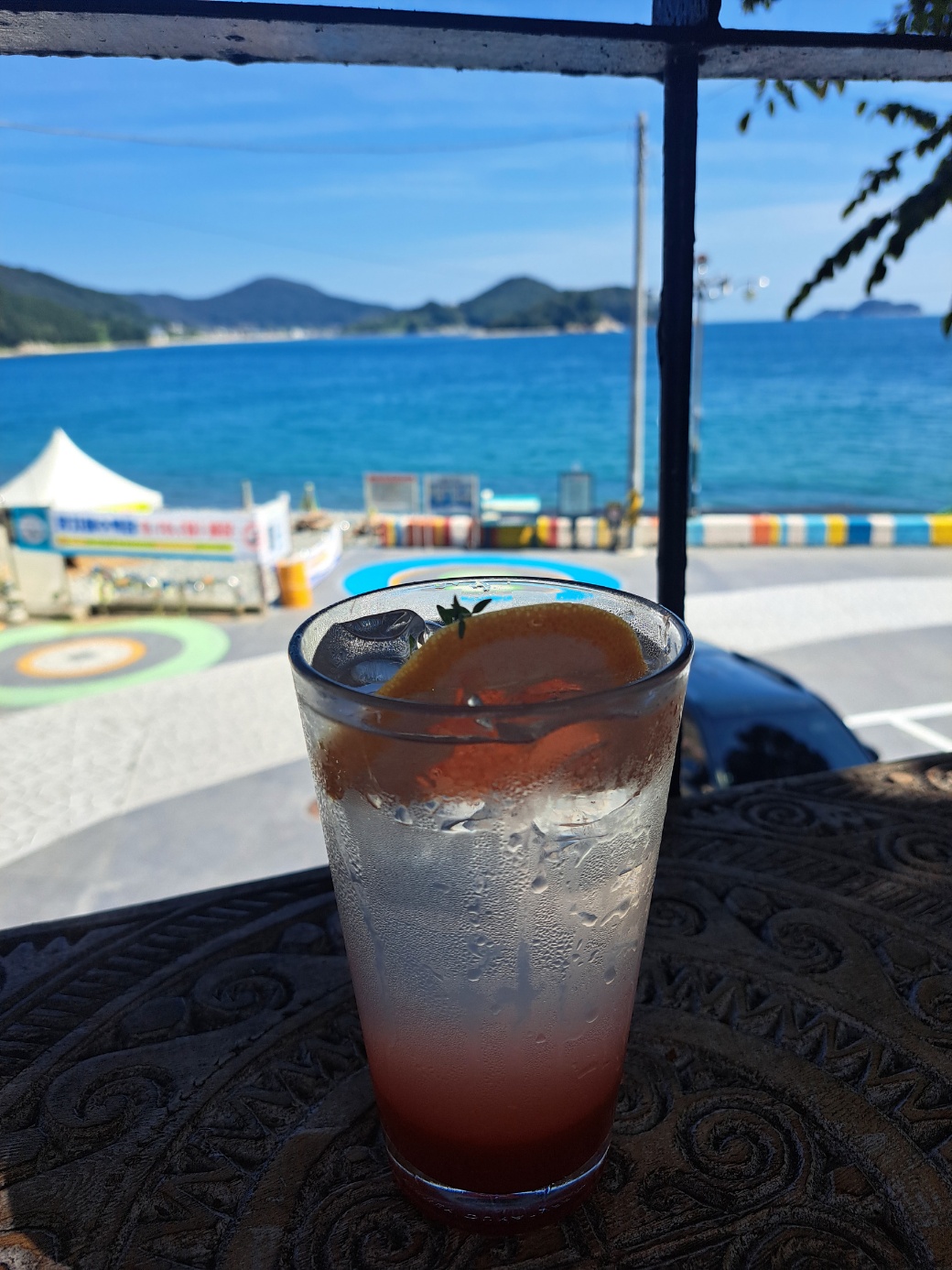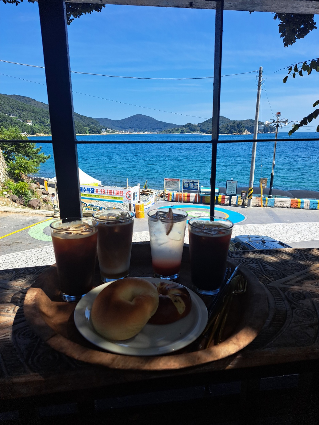 카페 바로 앞이 망치몽돌해수욕장이라 더욱 뷰가 돋보입니다. 이날은 특히 날씨가 맑은 데다 시원한 바람과 파도소리가 어우러져 더욱 커피 맛이 일품이었습니다.