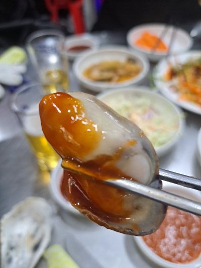 정말 잘 익은 굴을 까서 초장에 묻혀 입 안에 넣고 살짝 살점을 터뜨리면 입 안 가득 바다향기와 함께 살짝 감기는 눈, 입가엔 미소가, 몸은 저절로 좌우로 흔들흔들~~