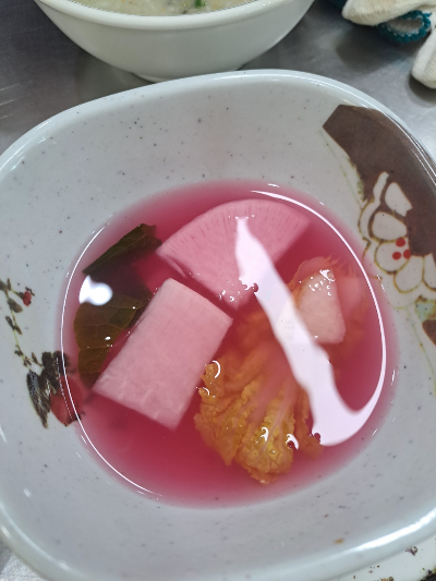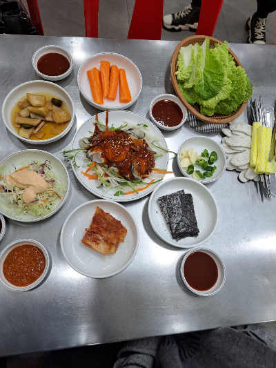 굴이 구워질 때까지 (삶아지는 것 같은) 기다리는 동안 김, 배춧잎 등 다양한 갖가지 반찬과 코스요리 중 두 번째 굴회가 나왔습니다.