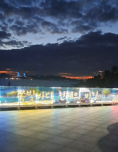 거제도 여행 필수 코스 오션블루 가덕 휴게소에서 바라본 노을 빛 풍경과 야경