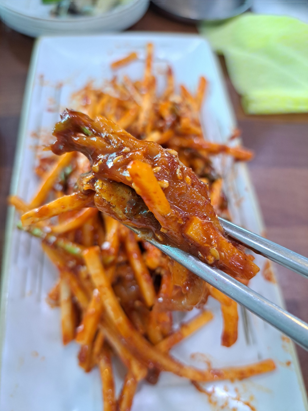 상추, 깻잎, 양배추, 다시마~쌈을 비롯한 기본으로 나오는 반찬들도 맛이 좋았어요. 특히 마음에 들었던 것은 맛깔스러운 멸치젓갈이 나왔다는 것이에요.