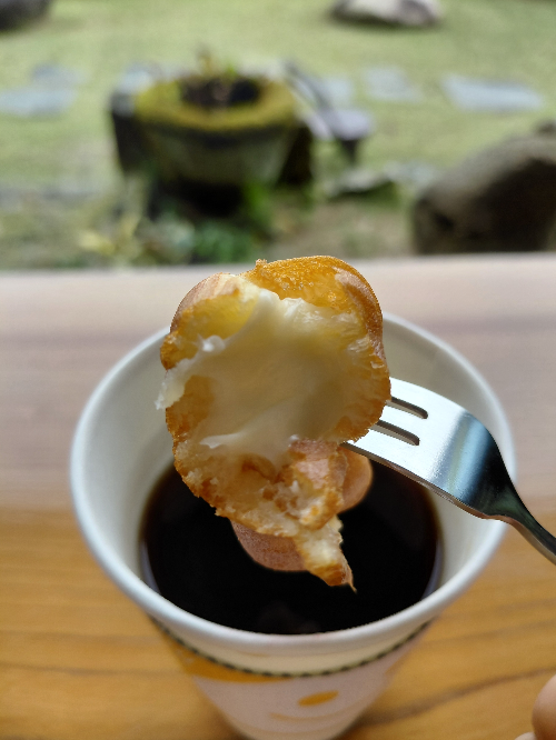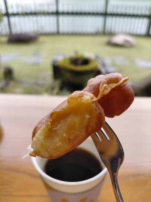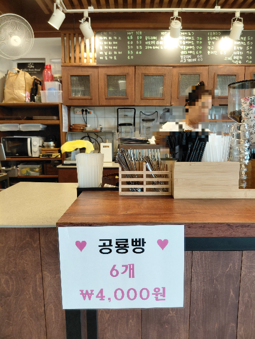 대가 돌솥밥 한정식을 먹고 바로 옆에 있는 대가호수카페에서 커피와 공룡빵을 주문했어요.