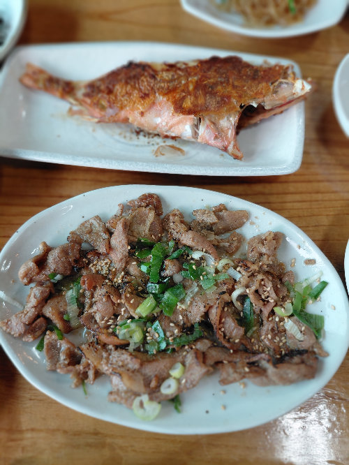 ● 숯불 향 가득한 직화 양념 돼지 불고기와 겉은 바삭, 속은 촉촉한 생선구이를 함께 즐길 수 있는 메뉴로 고기와 생선을 동시에 맛보고 싶으신 분들께 인기가 많다고 합니다. 특히 직화 불고기는 누구나 좋아할 만한 메뉴였어요