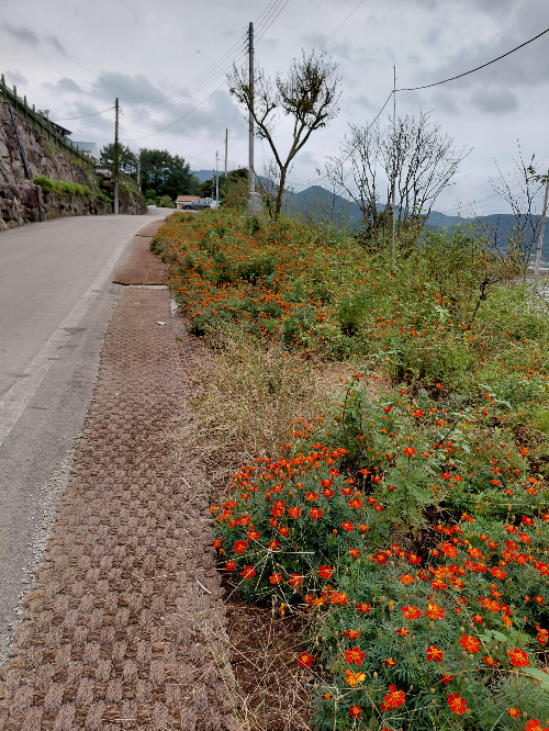 대가돌솥밥 한정식은 들어가는 입구가 길며 넓은 정원과 주차장을 갖추고 있었습니다. 가을이라 밥집으로 올라가는 오른쪽 편 화단엔 메리골드가 가득 피어있어 더욱 매력적이었어요.