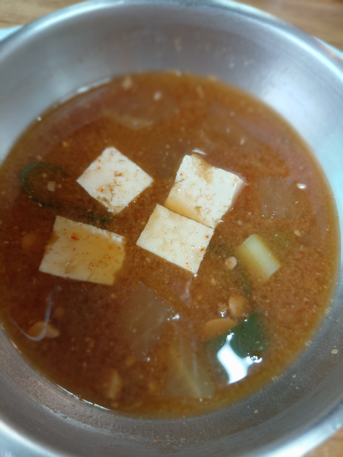 구수한 된장국과 콩잎 장아찌가 더욱 돋보였습니다.