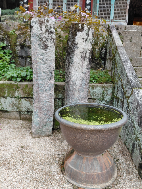 옥천사의 가장 중심인 대웅전 바로 옆에는 그 유명한 옥천수가 흐르는 약수터가 사당처럼 멋진 모습으로 누군가를 기다리듯 듬직하게 자리 잡고 있었습니다. 그냥 지나칠 수 없어 약수 한 바가지 훌렁 마셨네요.