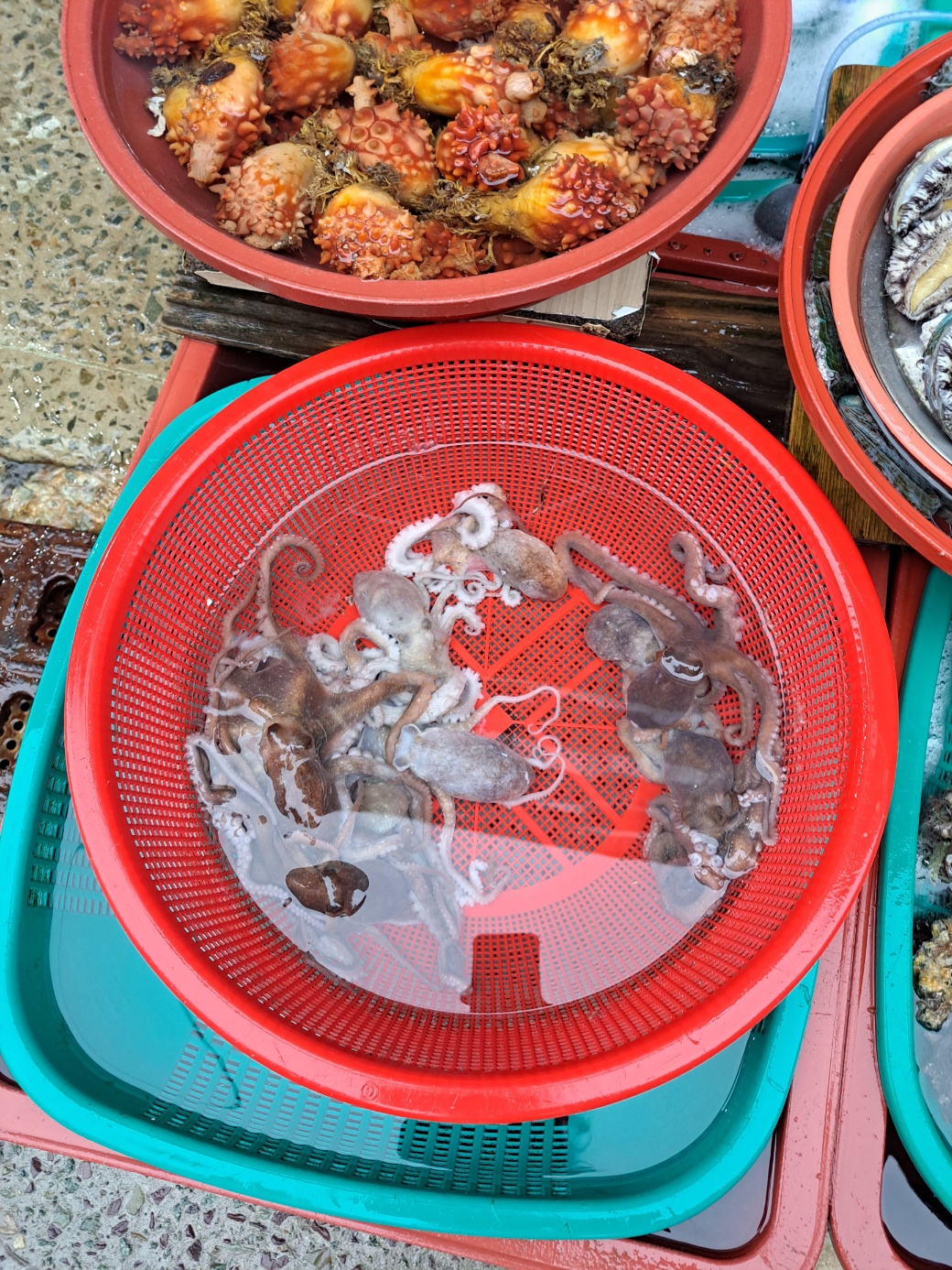 활어 시장에는 남은 활어들을 떠리미(떨이)하느라