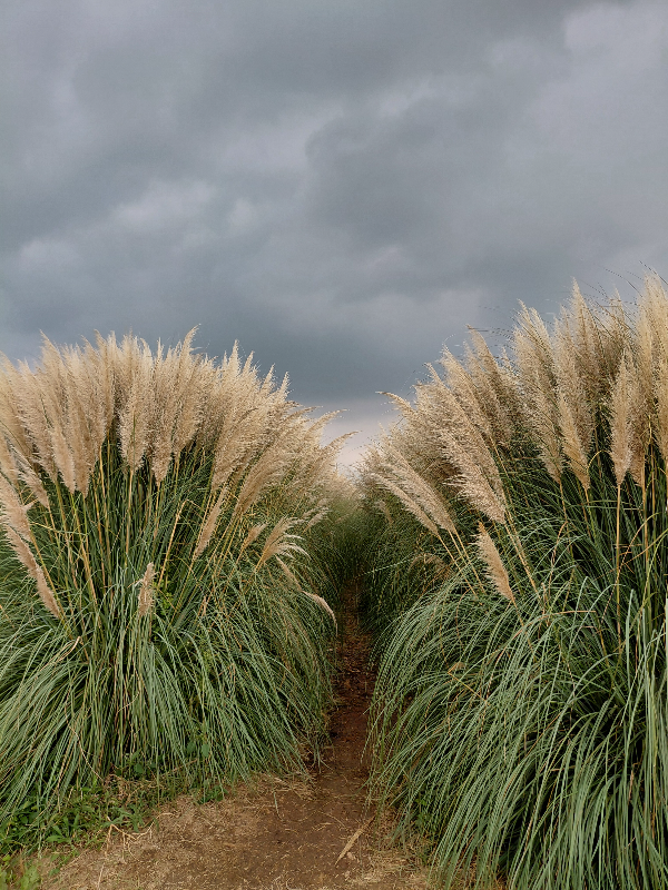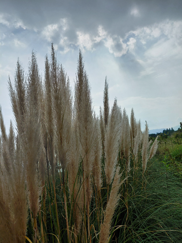 그러나 제가 방문한 날은 약간 흐린 가을날이었어요. 마치 수묵화처럼 차분하고 고요한 매력을 발산한 팜파스는 하늘의 온화한 회색빛 덕분에 은빛과 베이지색 이삭들은 더욱 돋보였습니다.