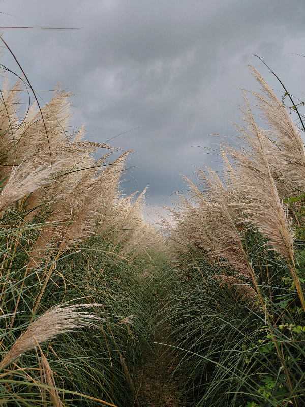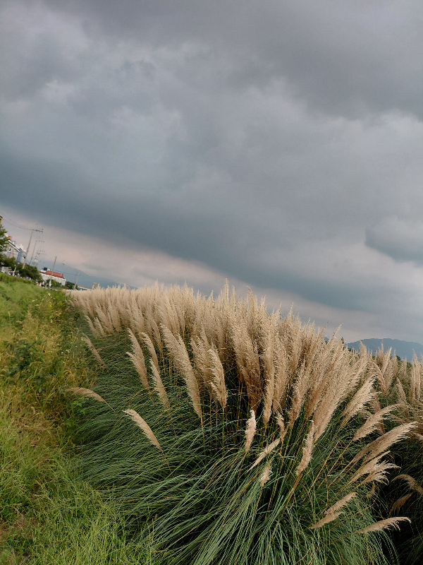 그러나 제가 방문한 날은 약간 흐린 가을날이었어요. 마치 수묵화처럼 차분하고 고요한 매력을 발산한 팜파스는 하늘의 온화한 회색빛 덕분에 은빛과 베이지색 이삭들은 더욱 돋보였습니다.