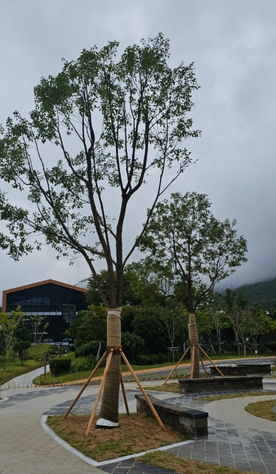 아래 두 그루의 나무는 임진왜란 당시 거북선을 만들 때 사용되었던 녹나무라고 합니다.