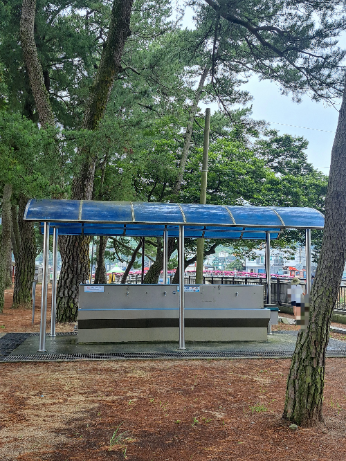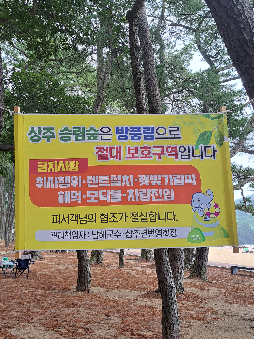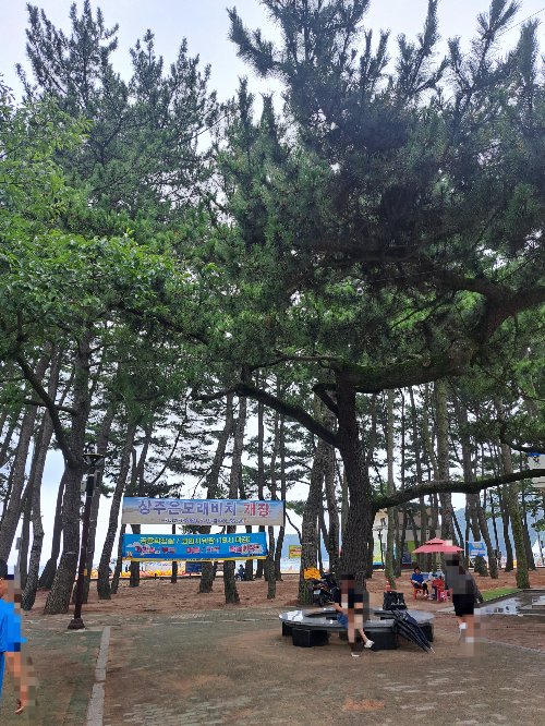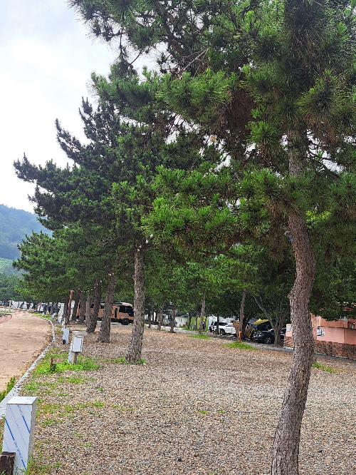 상주은모래비치의 매력이 송림에서는 취사불가였습니다. 취사는 안되었지만 수도가 설치되어 있어서 씻을 수는 있었어요. 대신에 한쪽에 오토캠핑장이 마련되어 있었어요.
