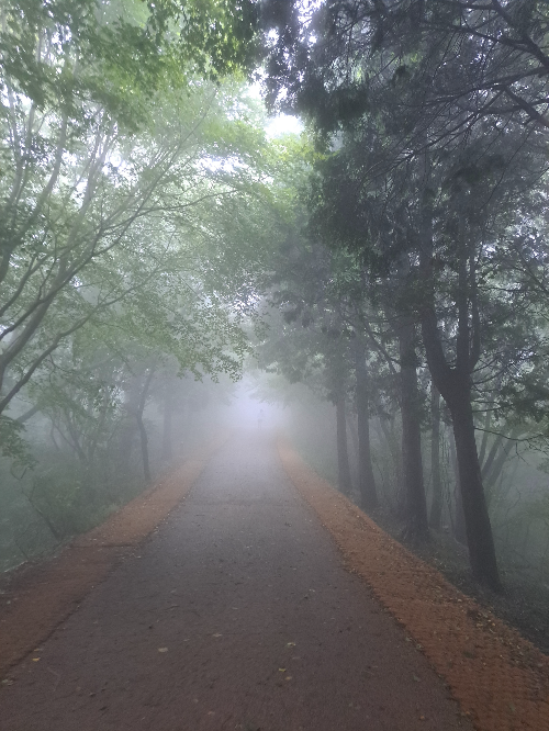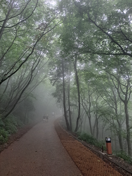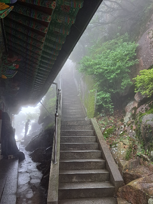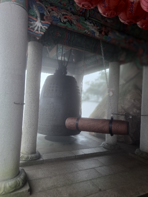 보리암 올라가는 길은 약간 오르막 길이었습니다. 저희가 방문한 날은 앞이 보이지 않을 정도로 구름이 가득 끼어서 아쉽게도 아예 전망은 볼 수가 없었습니다. 오히려 햇볕이 쨍쨍하지 않아서 다행이라고 위로 아닌 위로를 하면서 보리암을 방문했습니다.