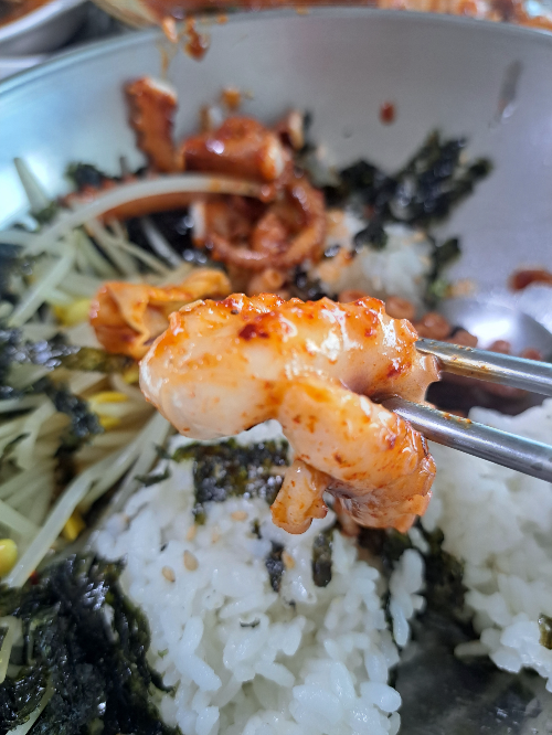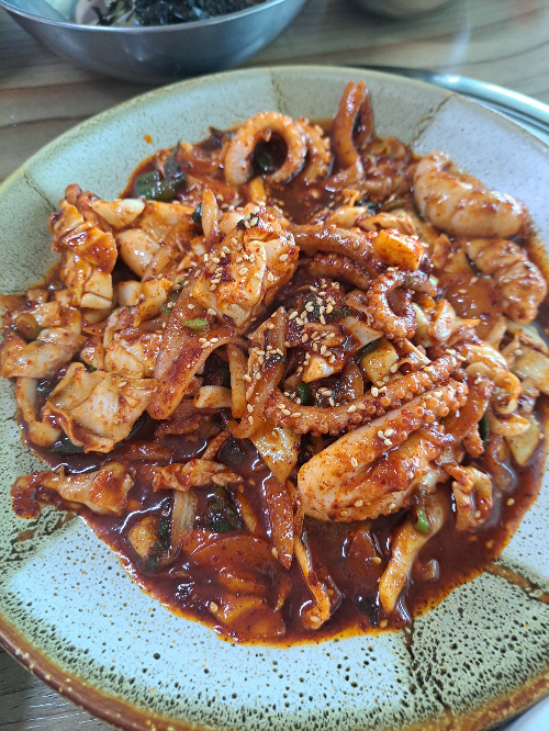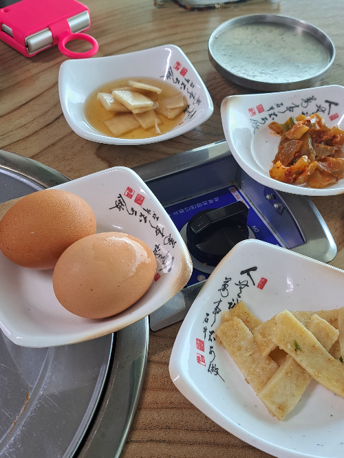 저희는 백사장에서 추억을 느끼며 한 참 시간을 보내다가 배가 고파서 근처 식당으로 이동했습니다. 해수욕장 왼쪽 끝자락에 자리 잡은 '돈불낙'이라는 식당에서 낙지볶음을 맛있게 먹었습니다. 사장님도 친절하셨어요. 삶은 계란 추가를 한 개에 500원으로 생각보다 계란이 컸어요. 만족했습니다