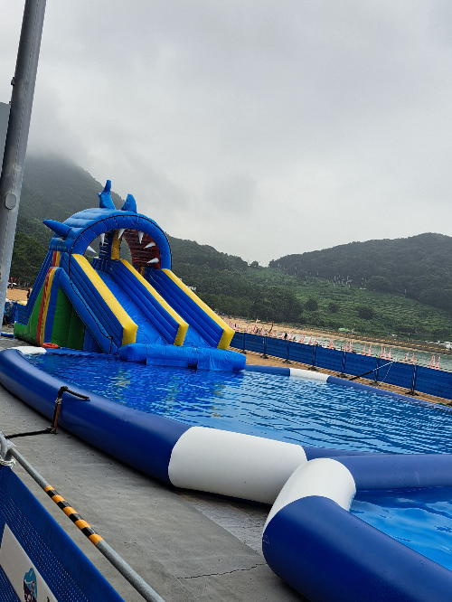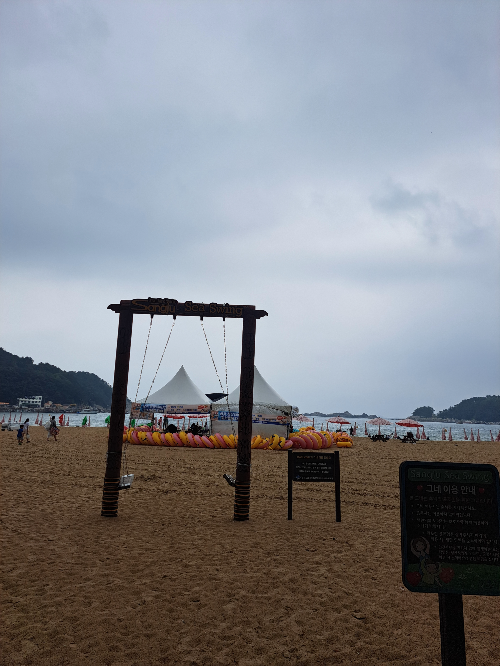 해수욕시즌이라 백사장엔 아이들이 좋아할 만한 튜브 해수욕놀이시설도 마련되어 있었습니다.
