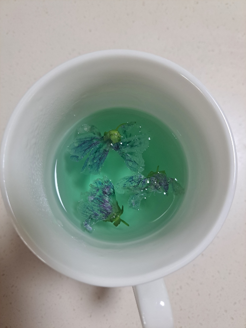 ● 찻잔을 미리 따뜻한 물로 데워둡니다. (꽃의 색감이 더 잘 우러나옵니다.)
