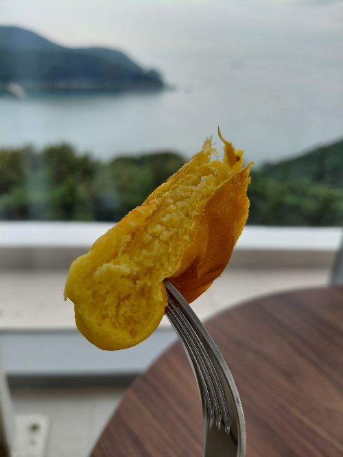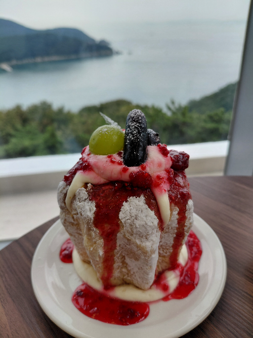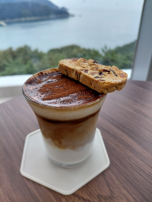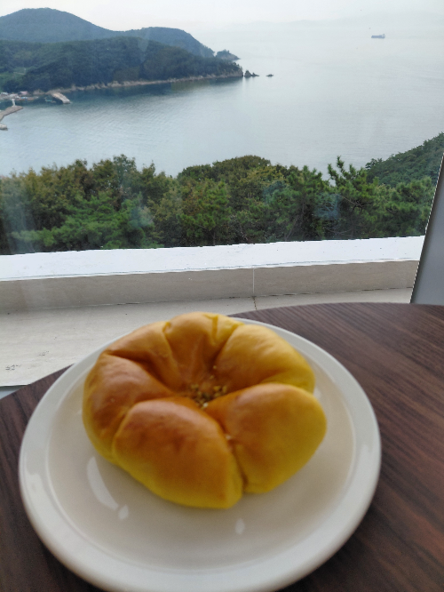 저희는 3층에 자리를 잡았습니다. 넓은 공간이었지만 겨우 자리를 마련해서 앉았습니다. 멀리 보이는 아름다운 바다 풍경과 어울어진 커피와 베이커리의 조화는 더할 나위 없는 행복감을 안겨줬습니다.
