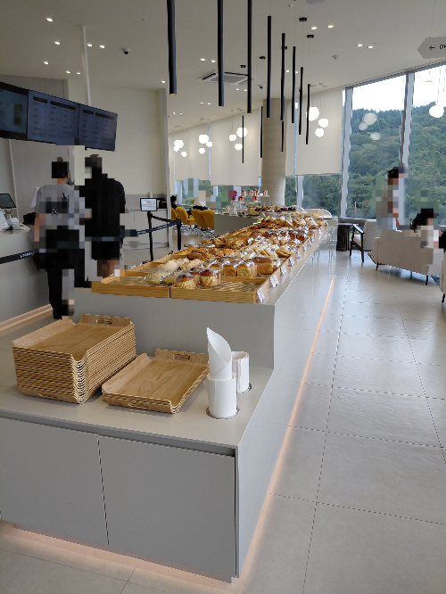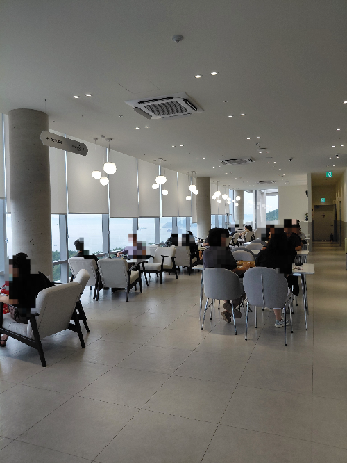 투명한 유리창 너머로 펼쳐지는 바다를 바라보며 여유롭게 빵과 커피를 고르는 순간은 그 자체로 힐링이 됩니다. 1층과 마찬가지로 케어 키즈존이라 가족 단위 방문객에게 더욱 좋습니다. 다양하게 준비된 베이커리들은 눈과 입을 즐겁게 해 주기에 충분했습니다.