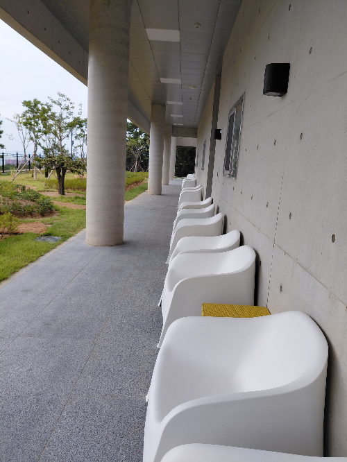 1층은 주차 공간과 함께 드넓은 야외 라운지와 정원이 펼쳐져 있었습니다. 야외 정원은 시원한 바닷바람을 맞으며 산책하거나, 여유롭게 시간을 보낼 수 있는 공간입니다.