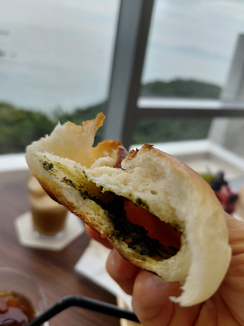 저희는 스톤라운지만의 개성이 담긴 시그니처 메뉴인 스톤라테와 함께 여러 종류의 베이커리를 주문했습니다. 촉촉하고 부드러운 식감의 빵과 고소한 풍미의 커피는 아름다운 오션뷰와 완벽하게 어우러졌습니다.