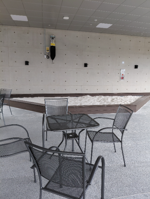특히 모래놀이터도 있으며 케어 키즈존으로 운영되어 아이를 동반한 가족 방문객들도 안심하고 시간을 보낼 수 있도록 세심하게 배려한 점이 돋보였습니다. 자연 속에서 편안함을 느끼고 싶다면 1층 야외 공간을 추천합니다.