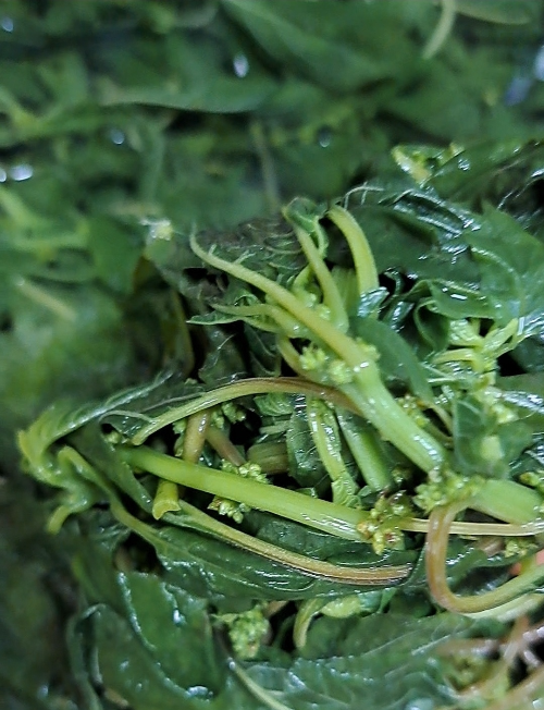 비름나물은 억센 줄기 부분을 제거하고 , 흐르는 물에 3~4번 깨끗하게 흔들어 씻어줍니다. 뿌리 쪽에 흙이 많을 수 있으니 특히 신경 써주세요. 이 과정이 맛있는 비름나물 무침의 시작입니다.