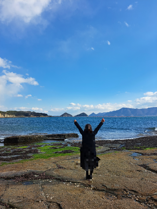 넓게 펼쳐진 바위 위에 나 있는 공룡발자국이 신기하기만 했어요. 그 넓고 긴 바위 위에는 홍합새끼들이 다닥다닥 숨 쉴 틈도 없이 많이 붙어 있었어요.