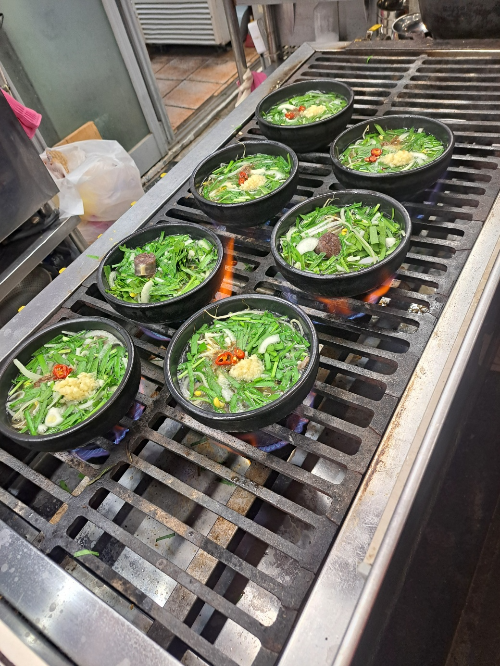 우리는 주차를 하고 제일식당을 찾아갔습니다. 많은 사람들이 이미 줄을 서서 기다리고 있었습니다. 저희 일행도 2~30분 정도 기다렸습니다. 기다리면서 살펴보니 수육거리와 국밥뚝배기 등 밖에서 미리미리 준비를 하고 있었어요.