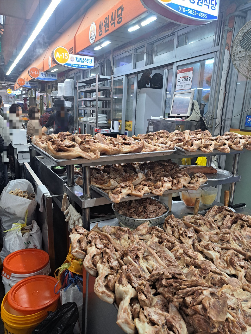 우리는 주차를 하고 제일식당을 찾아갔습니다. 많은 사람들이 이미 줄을 서서 기다리고 있었습니다. 저희 일행도 2~30분 정도 기다렸습니다. 기다리면서 살펴보니 수육거리와 국밥뚝배기 등 밖에서 미리미리 준비를 하고 있었어요.