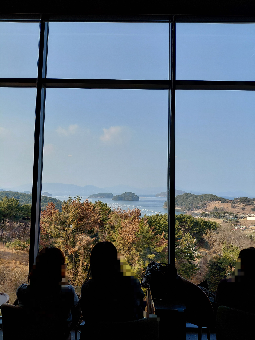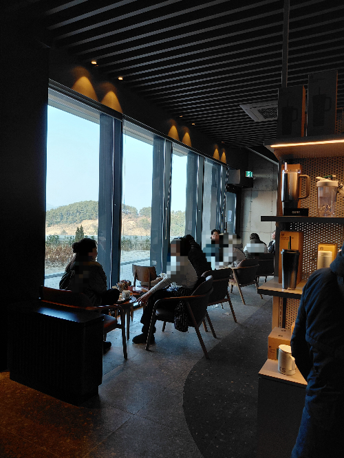 겨우 잡은 자리에서 통창 너머로 보이는 멋진 뷰를 바라보면서 얘기 꽃을 피웠네요. 남녀노소 할 것 없이 다양한 연령대의 손님들이 막 오픈한 스타벅스 거제 사등점을 즐기고 있었습니다. 주변을 의식할 필요가 없어 좋았어요.