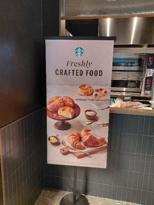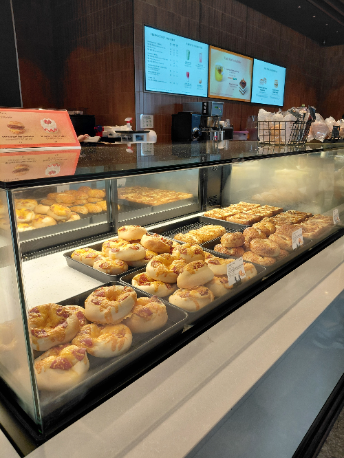 진열대 초입에는 따뜻한 조명을 받아 먹음직스러운 황금빛을 띠는 빵들이 가지런히 진열되어 있었습니다. 스타벅스 거제 사등점은 전국 최초로 베이커리를 굽는 스타벅스라지요.