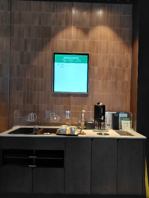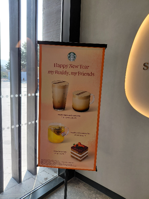 일단 스타벅스 사등점은 시내와 동떨어져 있지만 도로가에 위치해 있고 주차장도 넓어서 아주 마음에 들었어요. 언제든 지나가다 커피 한 잔 마실 수 있는 곳이에요. 매장 내부로 들어서면 마치 고급 리조트 로비에 온 듯한 착각이 들었어요