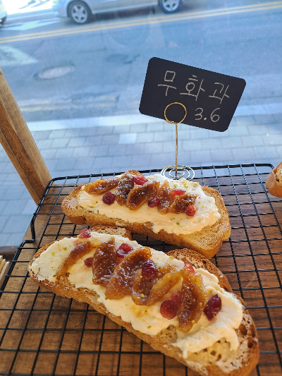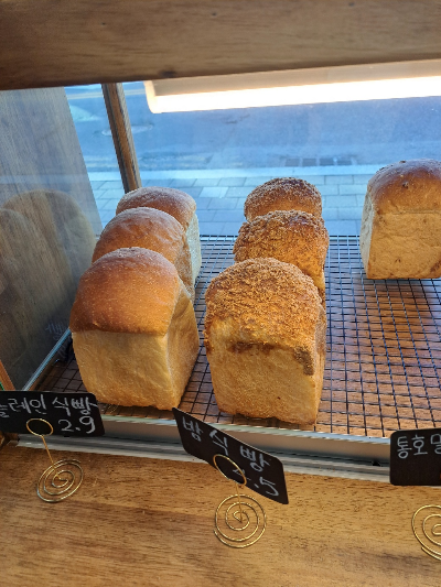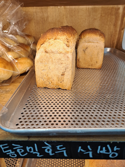 그러면서 빵을 사 주더라고요. 통호밀호두식빵과 팥빵이었습니다.
