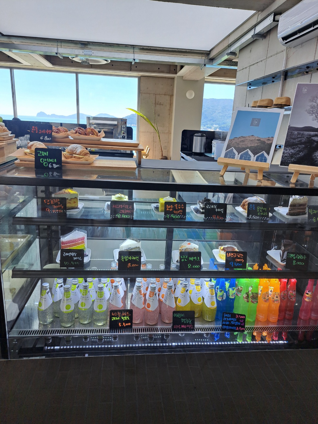 윤돌커피는 커피 맛도 일품이에요. 창밖 바다뷰를 감상하며 마시는 커피는 마음을 치유한다고 할까요? 멍 때리기에도 좋아요. 또 사장님이 개발한 다양한 메뉴들이 눈과 입을 유혹합니다.