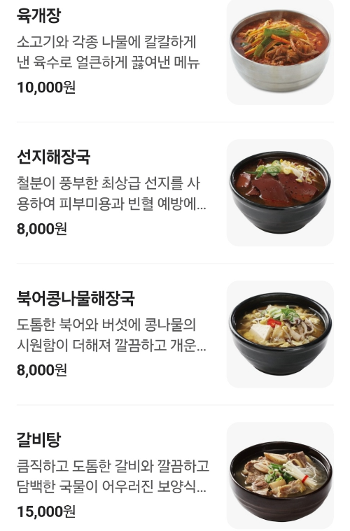 메뉴는 다양했습니다. 양평해장국이 맛있어 밥을 더 먹었네요. 맛있게 먹고 있으니 여섯 명의 손님들이 들어와서 선지해장국을 주문했어요. 선지해장국도 맛있는 것 같아요.