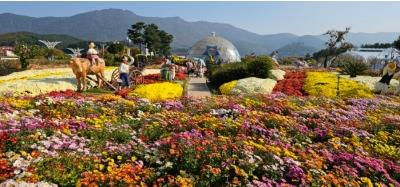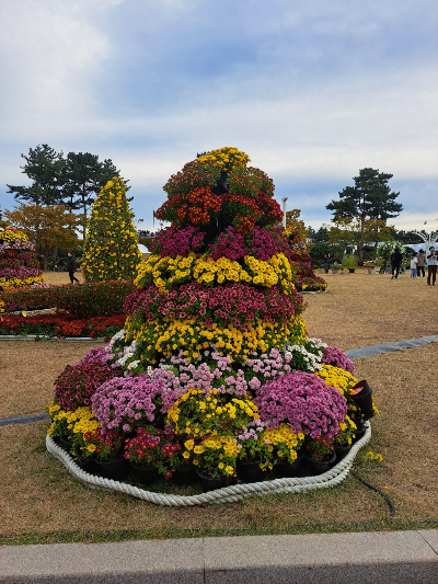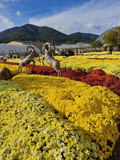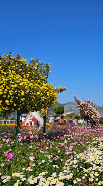 축제가 끝난 지 2주가 다되어가는 즈음에 국화가 이렇게 화려하게 만개했어요. 이상기온 탓에 국화의 개화가 늦어졌어요. 그래도 꽃을 좋아하는 분들이 끊임없이 꽃을 찾아오시니 국화가 더 활짝 웃고 있네요. 아름다운 활짝 핀 꽃의 자태를 한 번 볼까요.