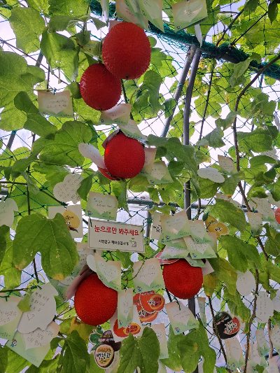 게욱 열매 주위엔 제18회 거제섬꽃축제를 찾으신 분들의 소원이 주렁주렁~가족의 건강과 수능시험 잘 보기, 로또 1등 당첨 등 간절한 소원들이 가득했어요. 저도 걸어놨죠. 모두의 소원이 이루어지길 바랍니다.