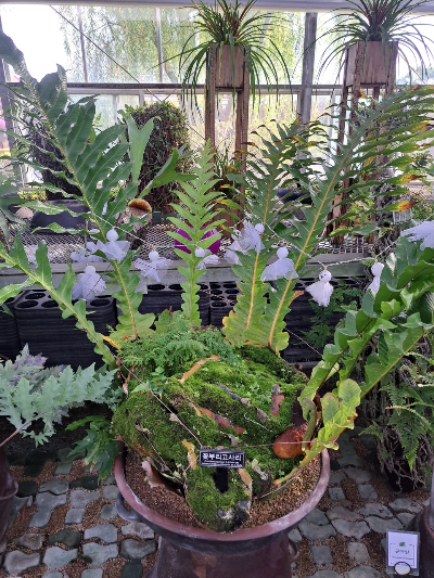자생란 순화전시관에도 다양한 종류의 석부작들과 이끼류 등이 멋지게 전시되어 있었어요. 감탄사가 절로 나왔습니다.