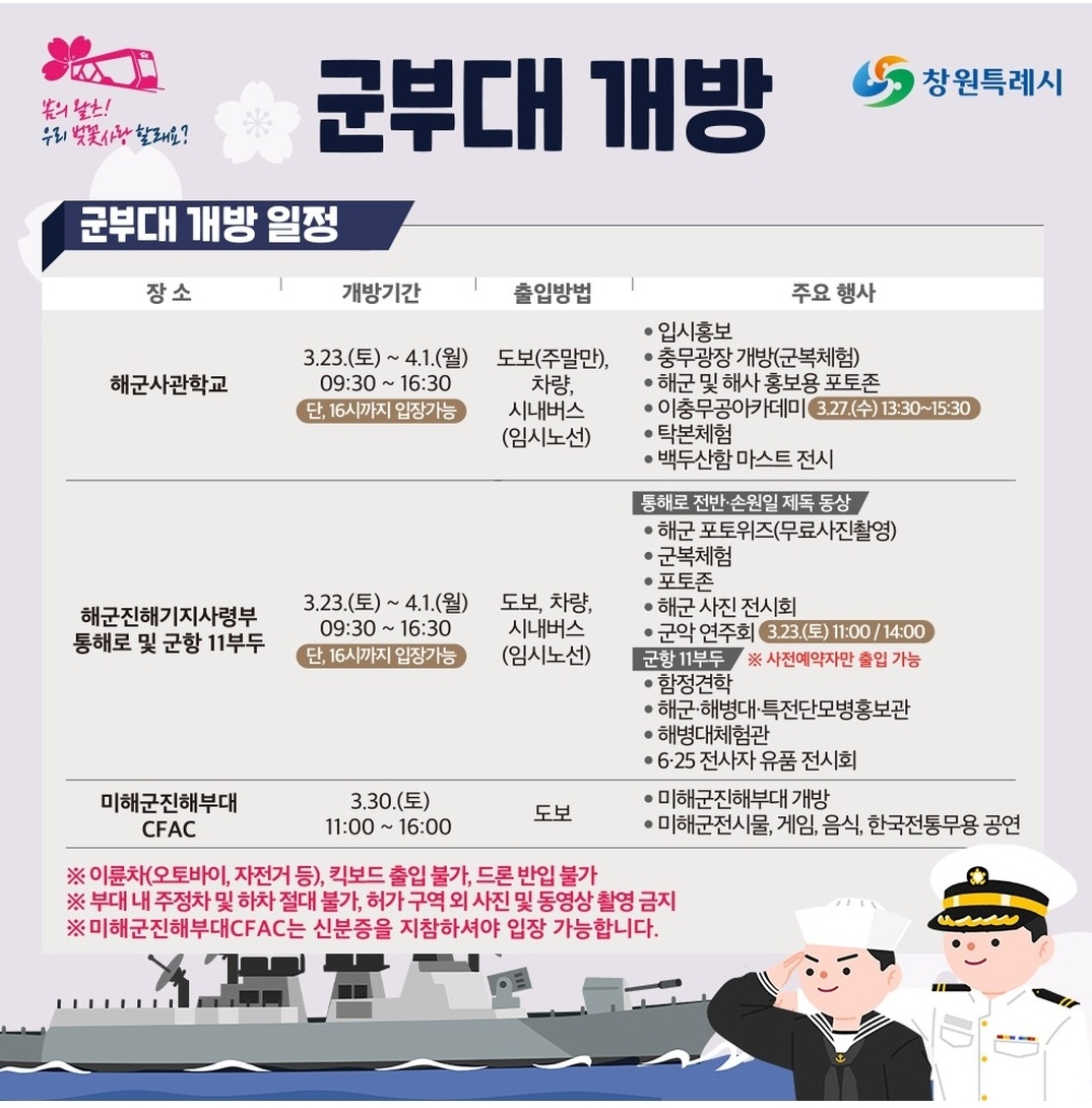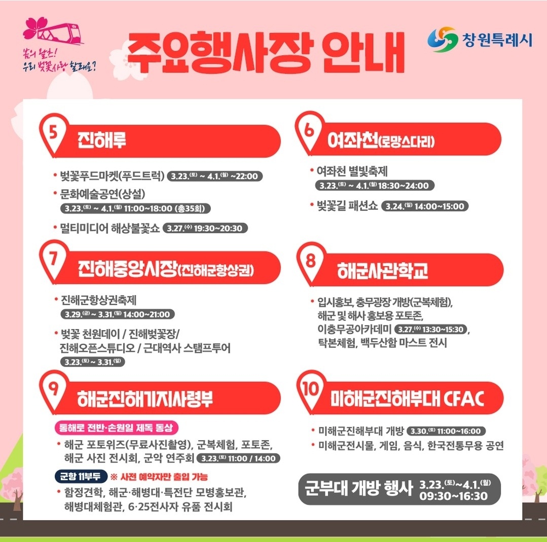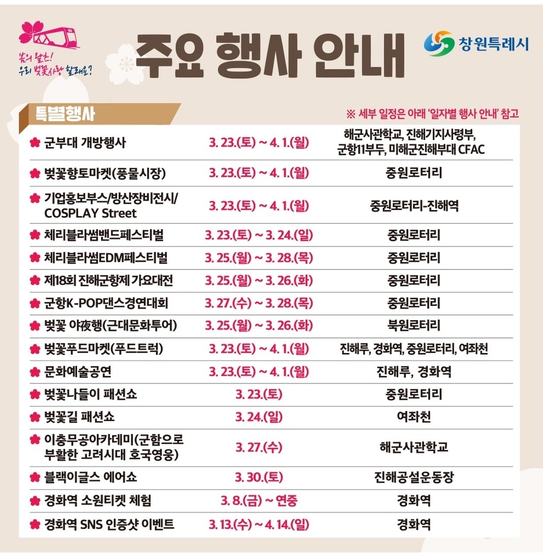 제62회 진해 군항제 행사 안내 및 주요 행사장 안내 벚꽃 구경 가세요