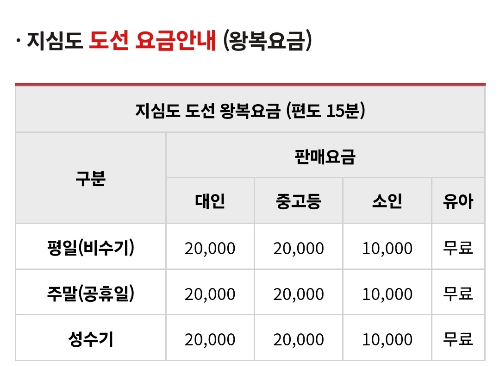 ● 지세포항 출발/대인(온라인예약 할인) : ₩19,500