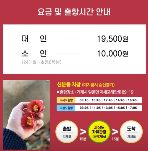 지세포 지심도 배 운항 시간과 외도 보타니아 유람선 운항 시간 유람선 요금 예약안내