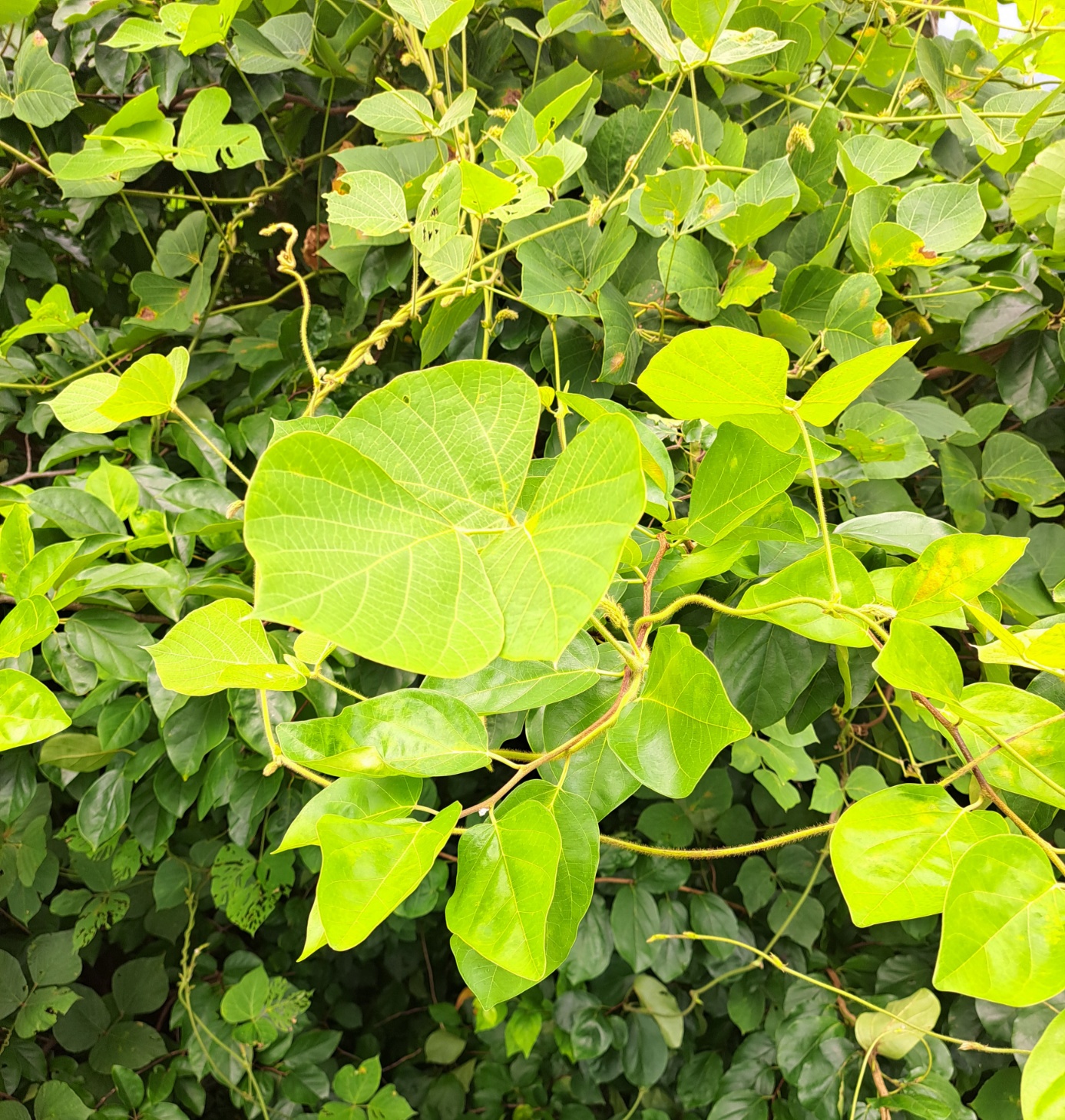 줄기는 길게 뻗어가면서 다를 물체를 감아 올라가고 갈색 또는 흰색의 털이 있으나 새로 생긴 줄기에만 달려있고 곧 없어진다고 하네요. 잎은 어긋나기로 달리고 잎자루가 길며 세 장의 작은 잎이 나온 나옵니다.