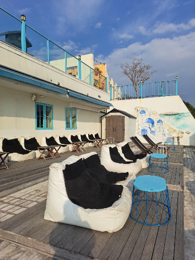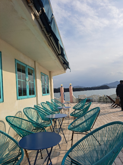 바다가 바로 앞에 놓여 있어 더욱 운치가 느껴지는 곳에는 다양한 의자들이 각자의 매력을 뽐내며 자리 잡고 있었어요.
