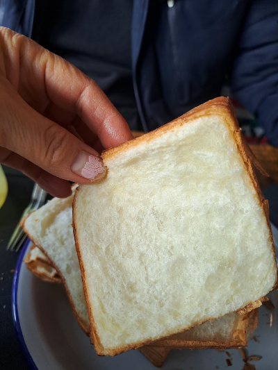 아들과 함께 주문을 했지요. 아들은 따뜻한 레몬차, 저는 핫아메리카노를 그리고 종이 찢듯이 찢어 먹는 빵을 주문했어요.