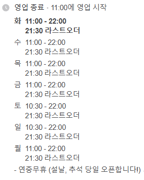 ● 영업시간: 영업시작 11:00, 영업종료