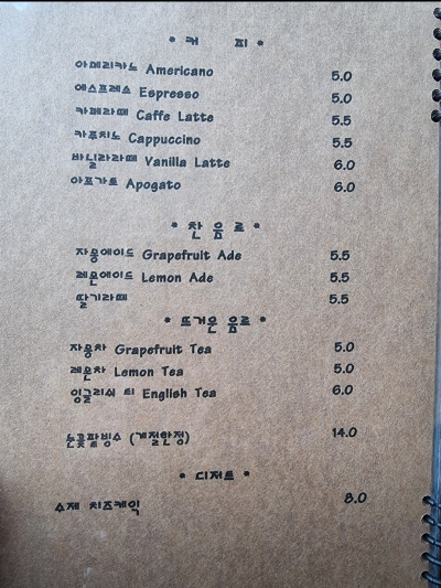 메뉴 판에는 입맛을 다시게 하는 영양이 가득한 메뉴가 눈을 어지럽게 했어요.