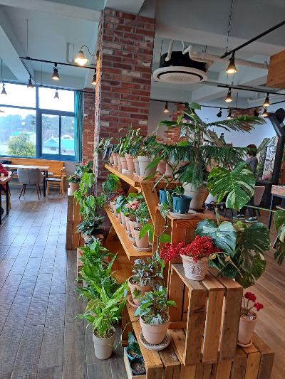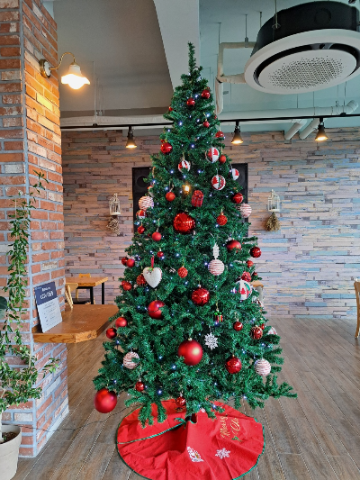 식당 안으로 들어서면 먼저 예쁘게 장식된 크리스마스트리가 반겨줍니다. 식당 안에도 고급지고 다양한 식물들이 숨을 쉬는 토분에 심겨 매력을 과시하고 있었어요.