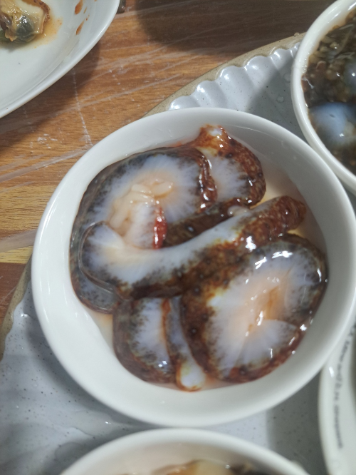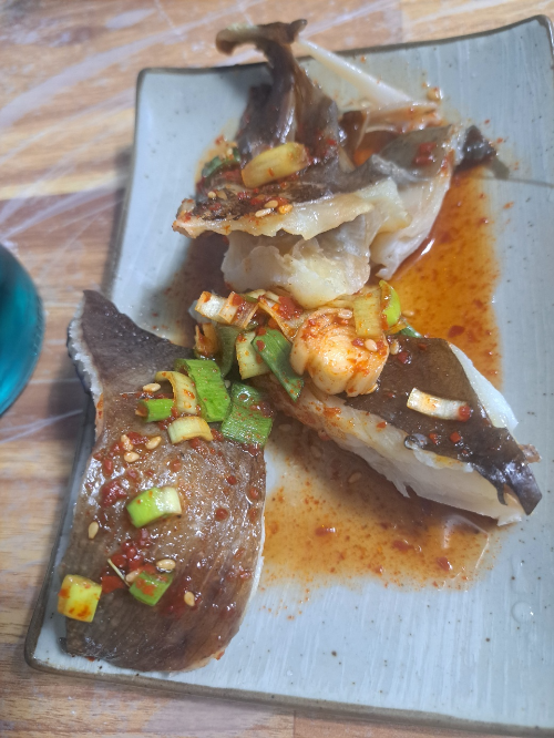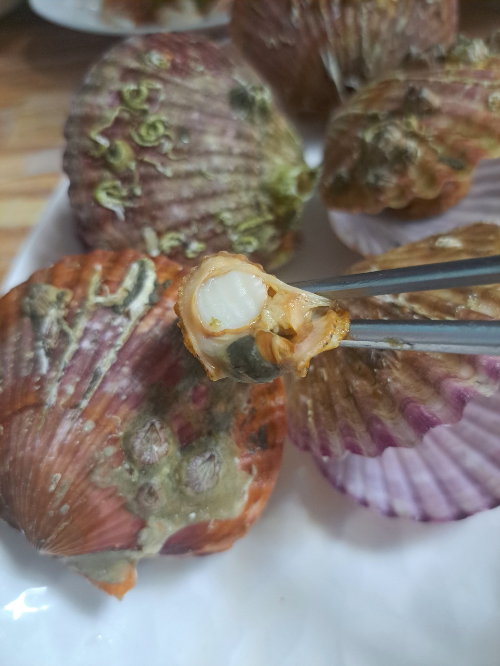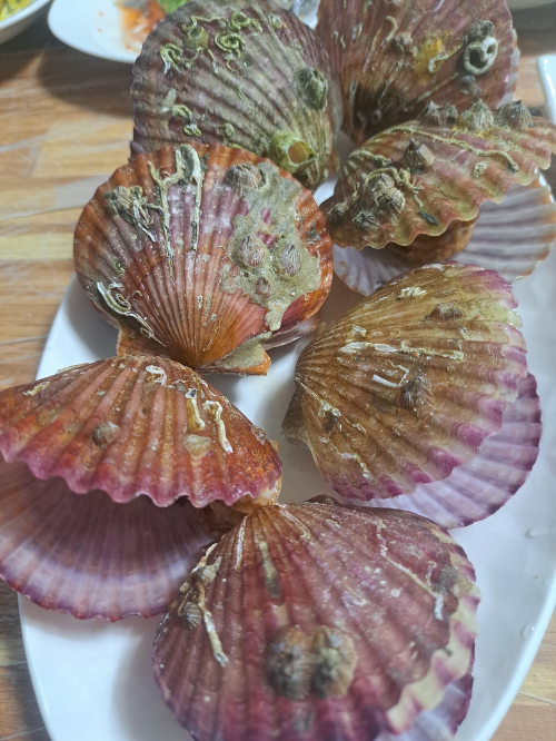 아니나 다를까 다음으로 자연산 돌멍게, 가리비찜, 가오리 양념찜이 나와서 눈과 입을 즐겁게 해 줬습니다.해산물들이 신선해서 아주 만족스러웠습니다.