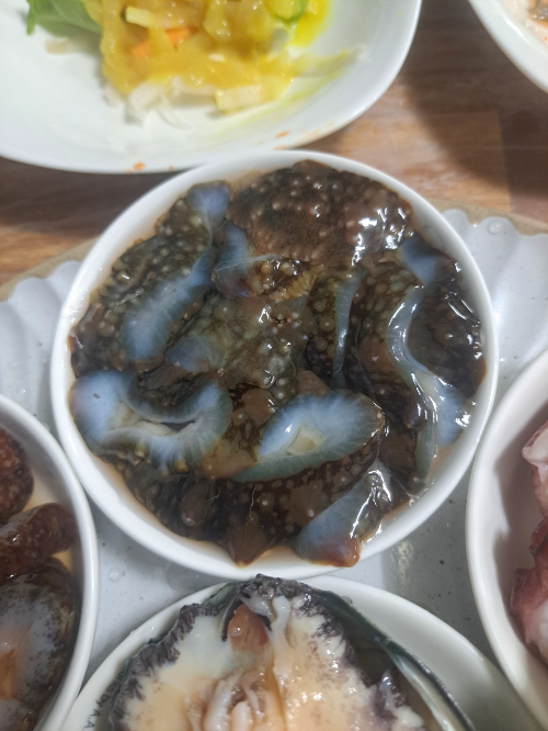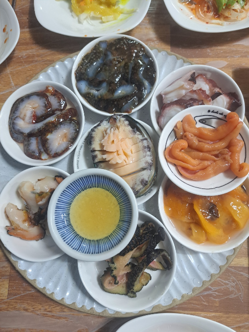 개불의 달콤함과 멍게의 향기~ 살아 있는 소라, 전복의 쫄깃쫄깃한 식감~ 해삼, 홍삼, 문어, 군소의 영양이 몸 안을 감쌌어요.